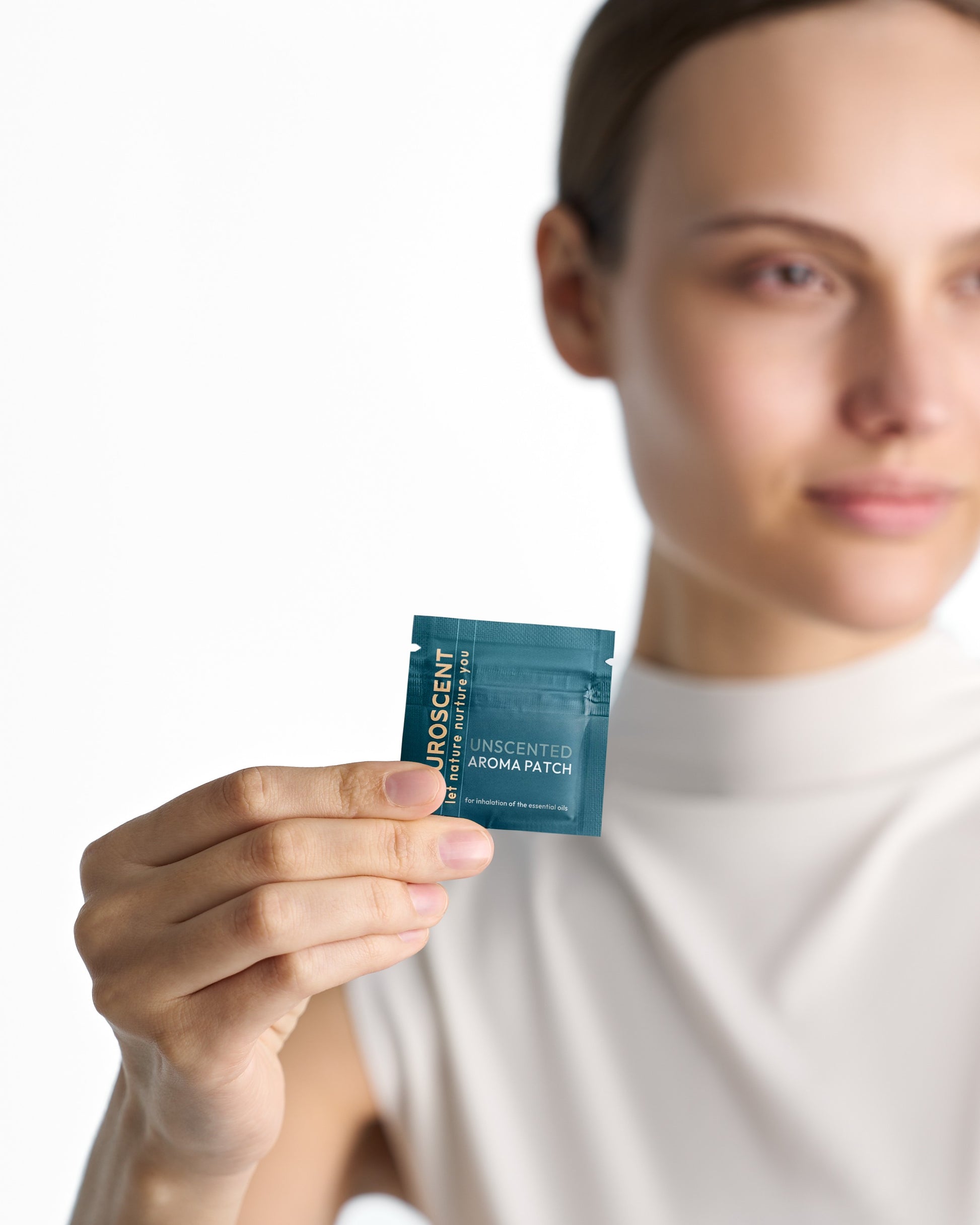 - Add 2–3 drops of your chosen NeuroScent essential oil blend directly onto the patch.