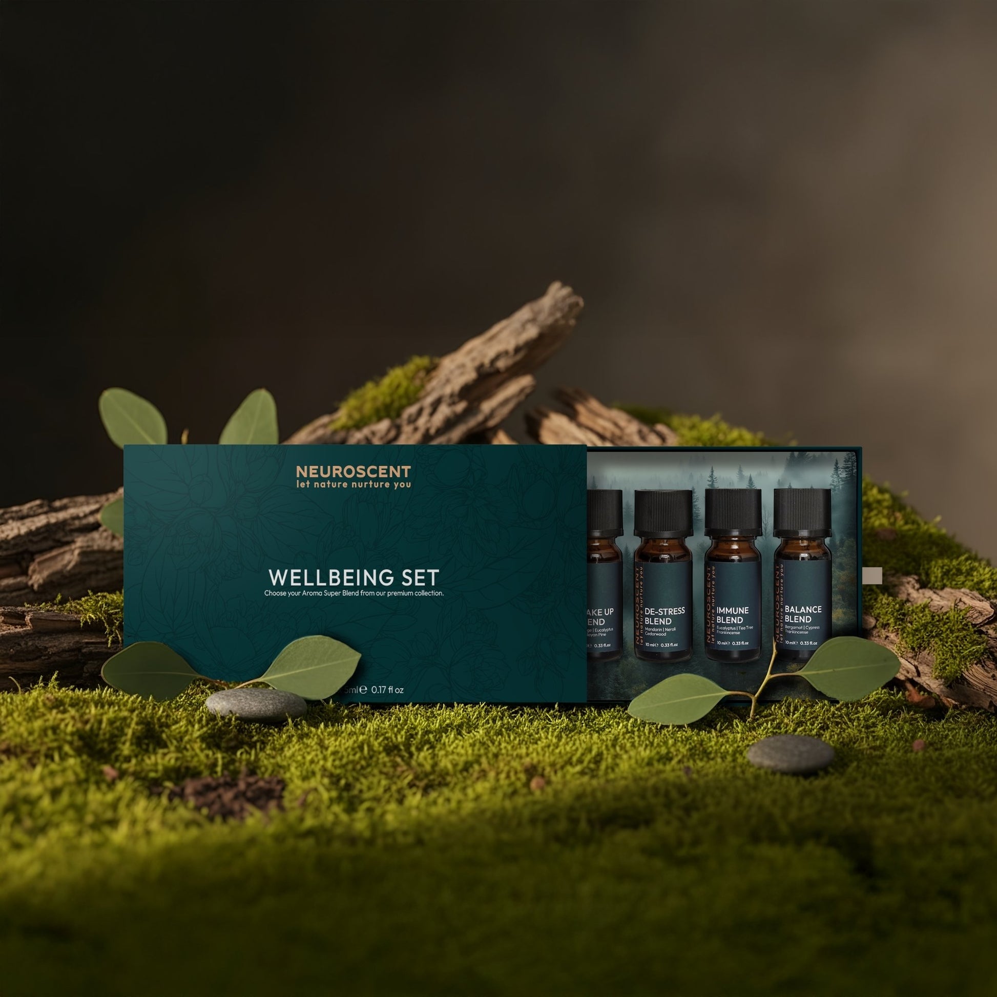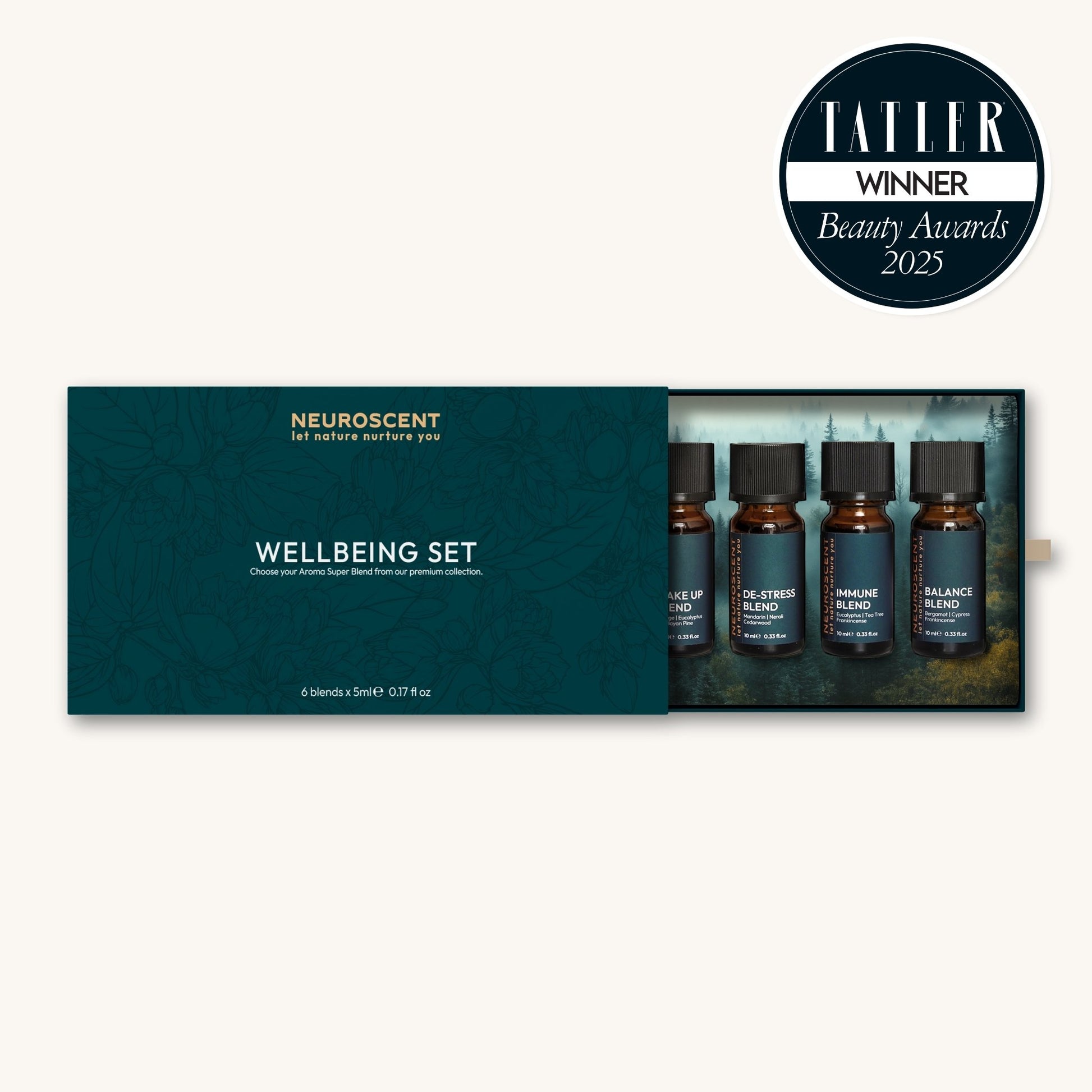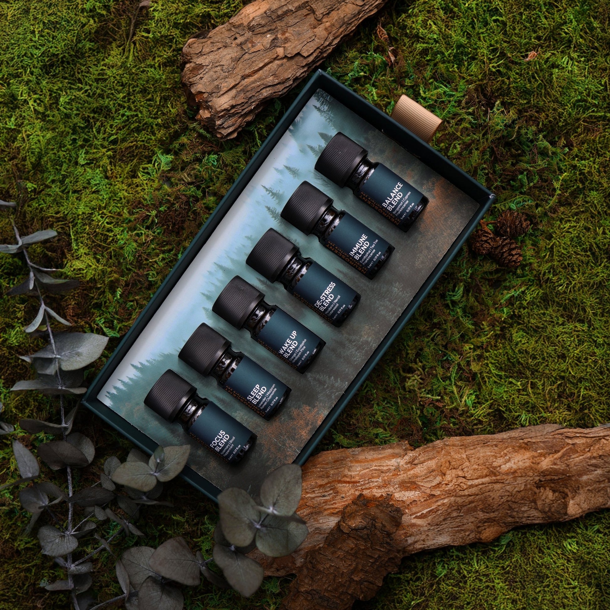 Your Private Ritual of Renewal. This premium collection of Six Signature Essential Oil Blends invites you to pause, reset and return to your most vibrant self. Science-backed and 100% natural botanical formulas support your physical, mental and emotional wellbeing.