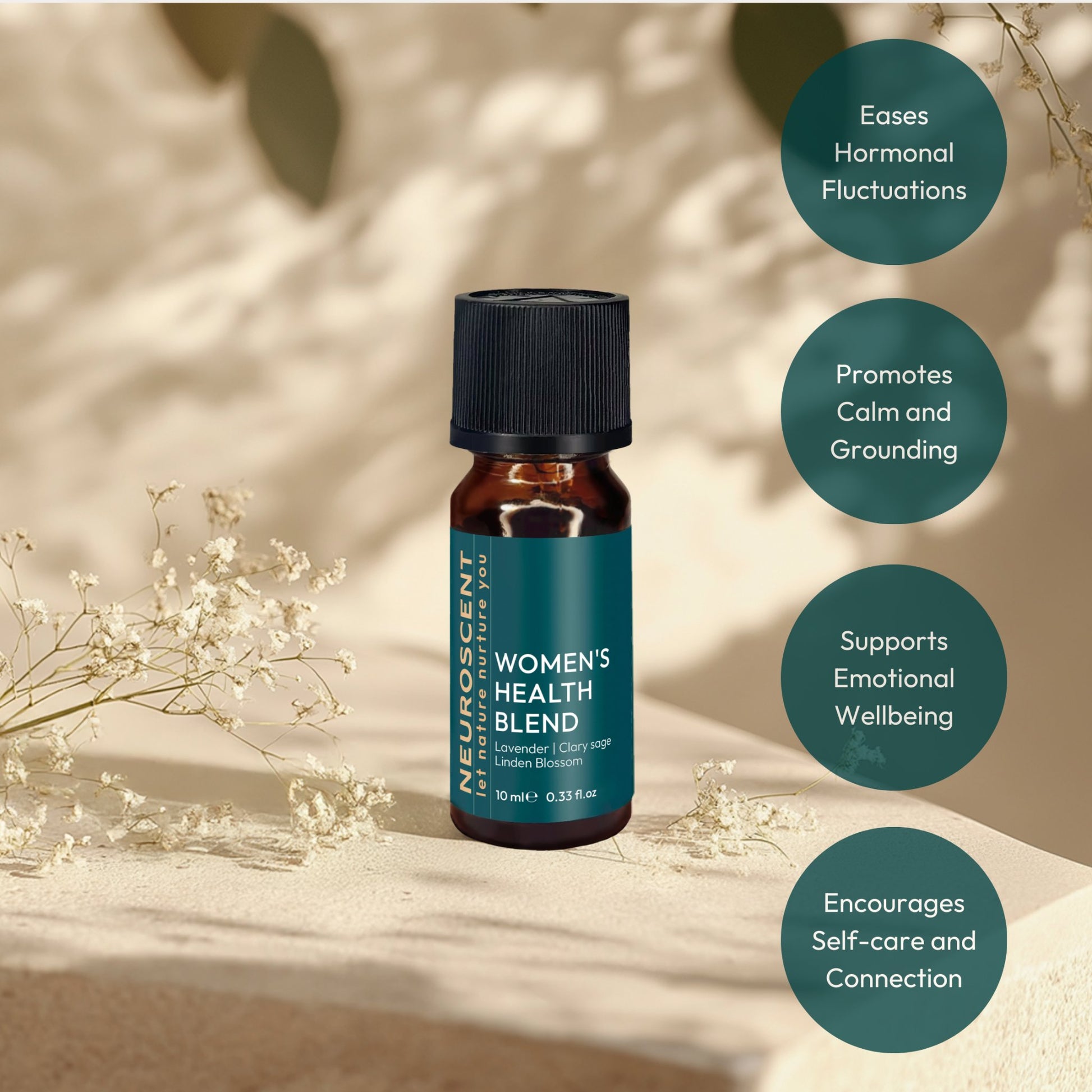 Women’s Health Blend is a sanctuary of hormone-balancing botanicals - such as Clary Sage, Lavender, Geranium and Linden Blossom - expertly composed to soothe emotional tides and restore inner harmony through life’s natural rhythms.